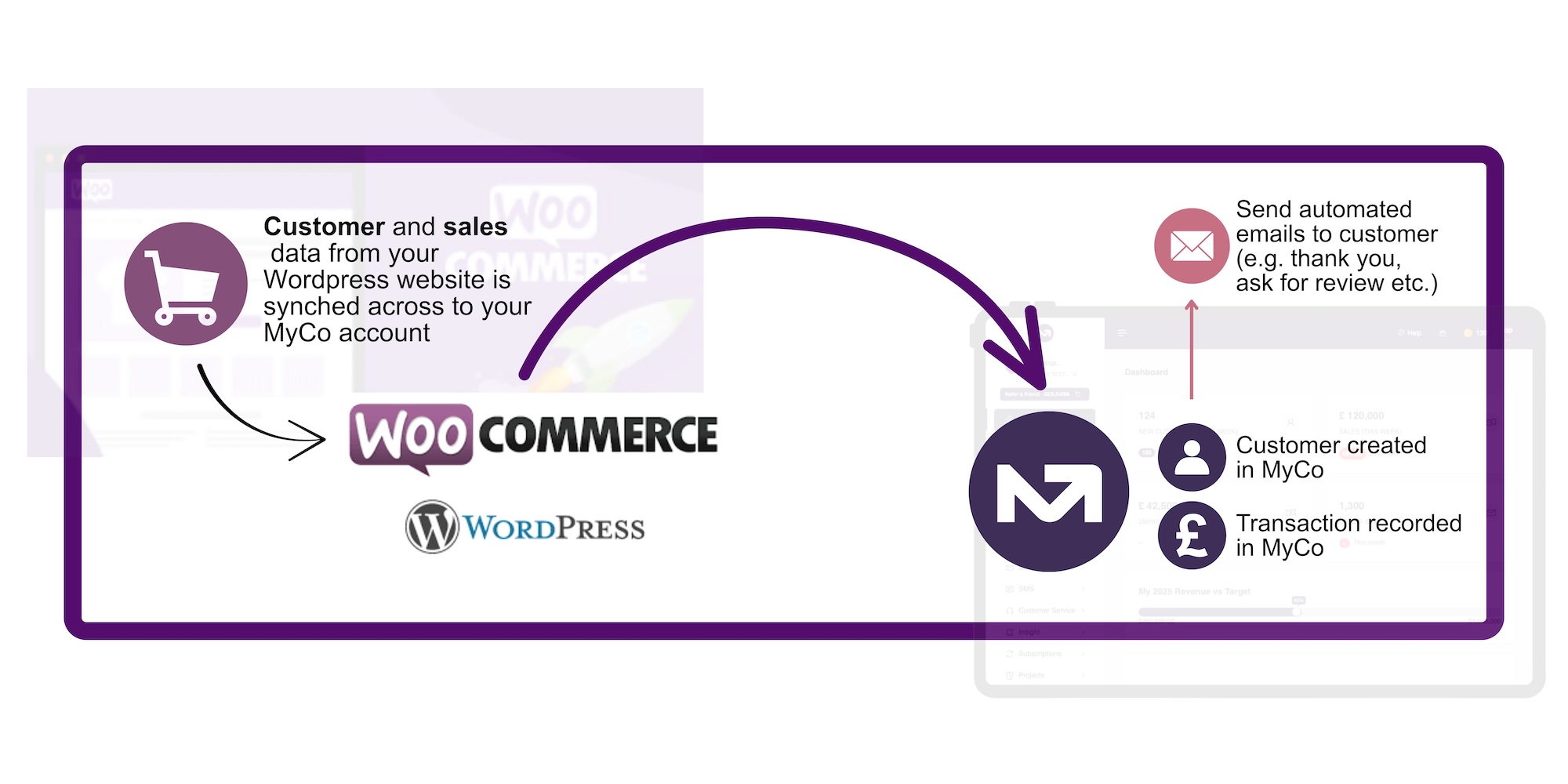 When new data flows from your website, MyCo doesn’t just store customer details, it can also trigger automated communications.